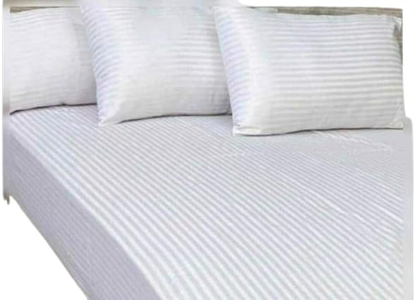 Generic - ملاية استريب جديد قطن ملياه + ٢خداديه مقاس 180سم سh (ابيض, مقاس 180سم)