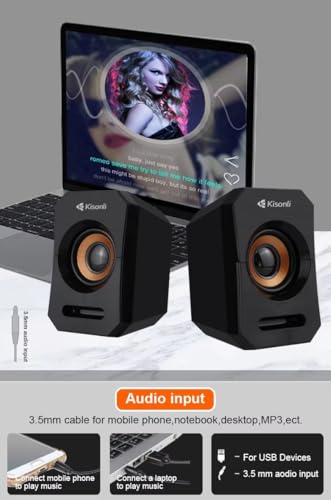 Generic - سماعات سبيكر للكمبيوتر ستيريو 2.0 - صوت عالي الجودة بقوة 6 وات - تشغيل عبر USB وكابل 3.5 ملم - موديل A-606 (اسود)