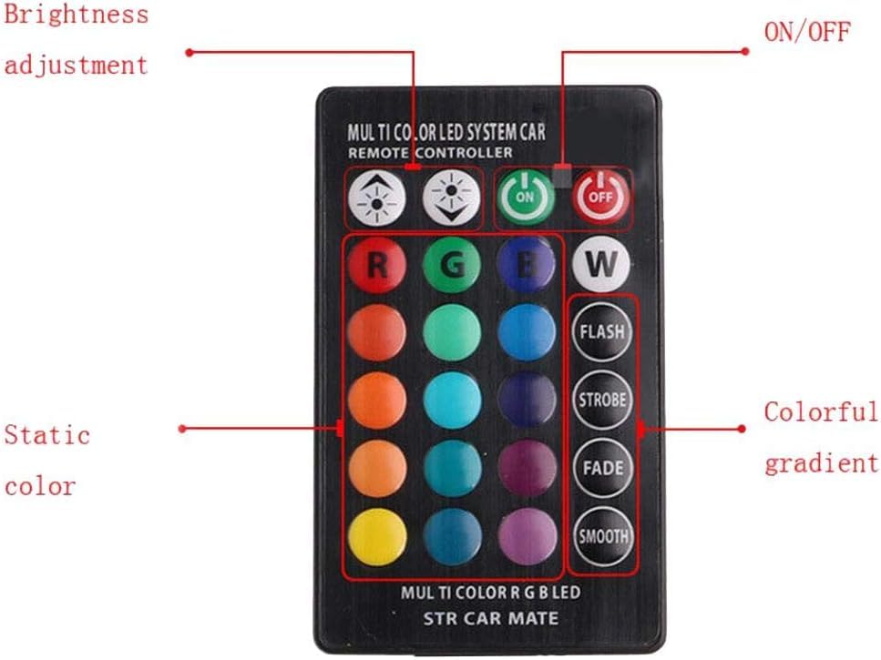 - 16 Color Change: Red/Green/Blue etc; 4 Kinds of Dynamic Effects: Flash, Flash, Fading, Soft; Brightness Adjustable You can change the color of the light you want with the controller. Only fit DC 12V