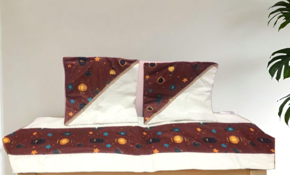 Generic - رانر طاولة رمضان + 2 كوشن كوفر مخدة طقم ٣ق مكون من رانر رانر مقاس كوشنز مقاس 40 × 40 cm خامه كتان