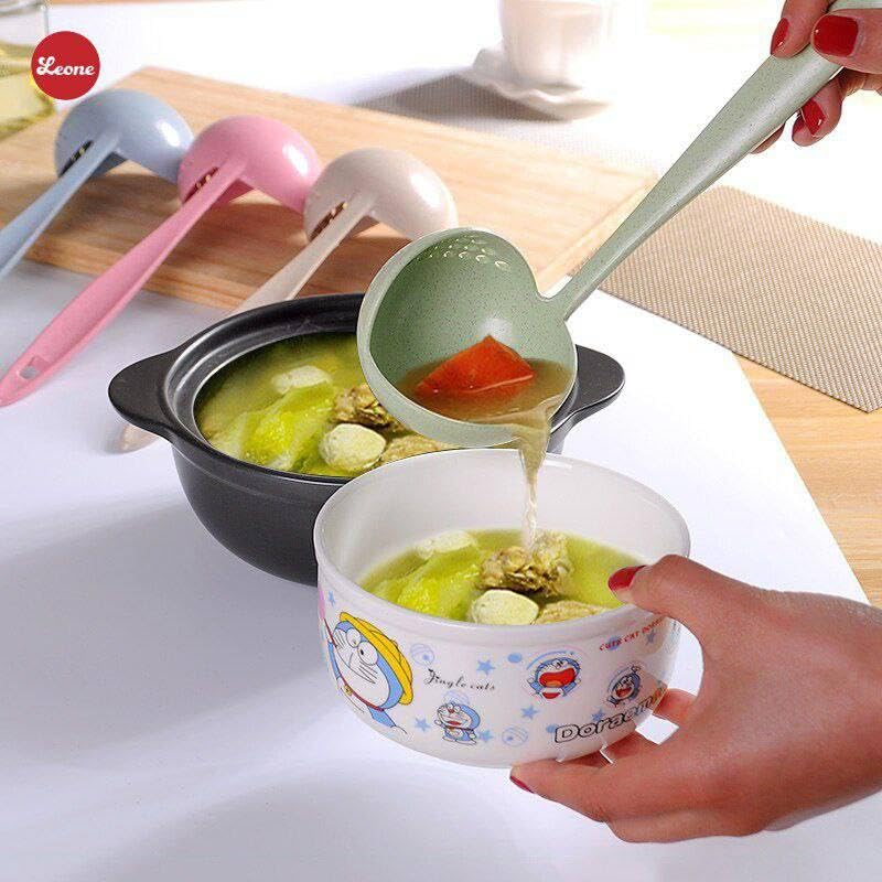 - Functional 2-in-1 design combines scoop and drain to help dining rooms and filter liquids easily.