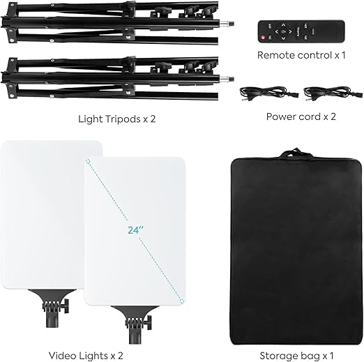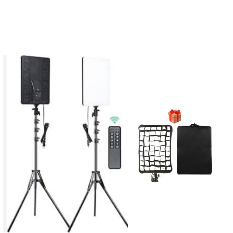 Generic - 2 بلاطه LED ثلاث ألوان (أبيض - أصفر - ميكس) 24 بوصة إضاءة تصوير قابلة للطي 2800-6500 كيلو بقوة 120 واط + 2 جهاز تحكم عن بعد + 2 حامل 2م + 2 جريد + 1 حقيبة, تصوير التصوير وفي صنع المحتوى وجلات المكيب