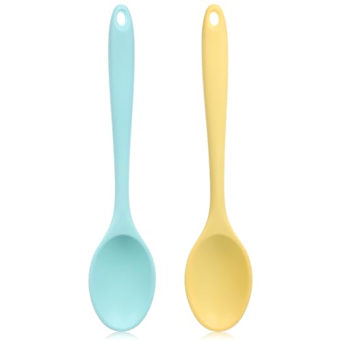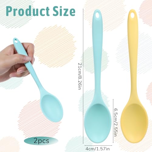 Alrhso - 2 Pcs Silicone Mixing Spoons 8.3" Nonstick Heat-Resistant Rubber Cooking Spoon Multi Function Kitchen Serving Spoon for Stirring Baking Eating Spaghetti Hot Chocolate, Dishwasher Safe(Yellow Blue)