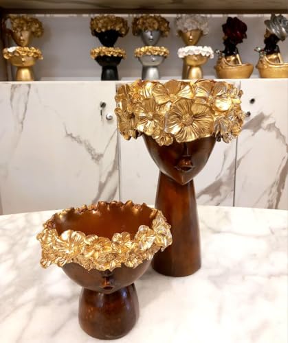 Generic - فازة بتصميم وجه، قطعتان (خشبي، كبير)