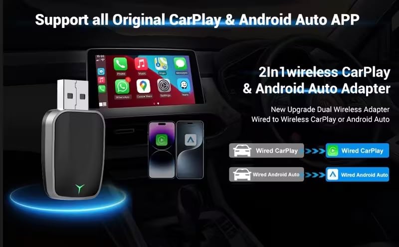 Generic - 2025 2in1 Wireless Carplay&Android Auto Box Wired to Wireless Dongle Automatic Connect Adapter Bluetooth Plug&Play Mini Box