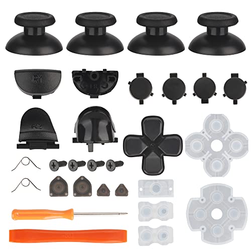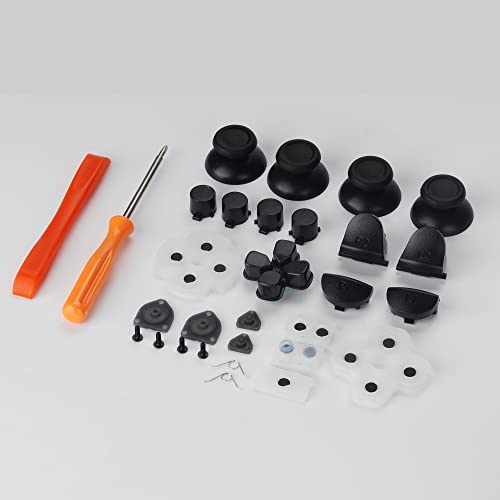 - Package includes: 4 thumbsticks, 4 ABXY buttons, 1set l1 r1 l2 r2 trigger, 1 d-pad, 1 set silicone conductive rubber pads, 4 screws, 1 screwdriver, 1 prying tool, 2 springs.