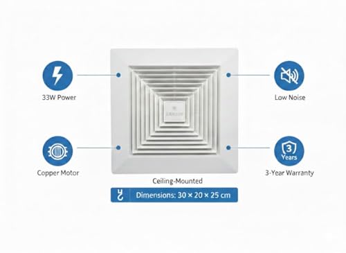 Sanshe Sharm - شفاط سقفي سانشي شرم توربو، 25×25 سم – 33 وات، محرك نحاسي، شفط قوي وهادئ، مدخنة 4 بوصة، ضمان المحرك 3 سنوات