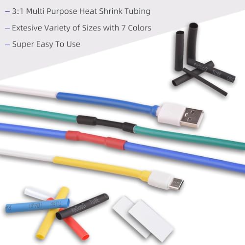 - FAST SHRINKING WITH SIMPLE HEAT APPLICATION: Each tube responds quickly to light heat from a hair dryer, lighter or heat gun, shrinking uniformly without melting or distortion. This makes it easy for anyone—beginner or expert—to perform repairs in seconds. Whether you’re fixing a family cable or upgrading a DIY project, the kit ensures smooth, dependable results without complicated tools.