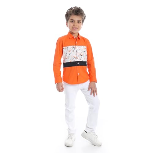 2B Stylish - Boys Collared Neck Long Sleeve Soft Shirt - Orange