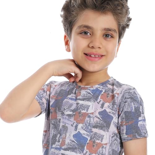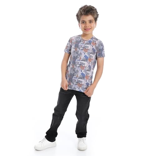 2B Stylish - Boys Printed Round Neck Half Sleeve Cotton T-Shirt - Navy White
