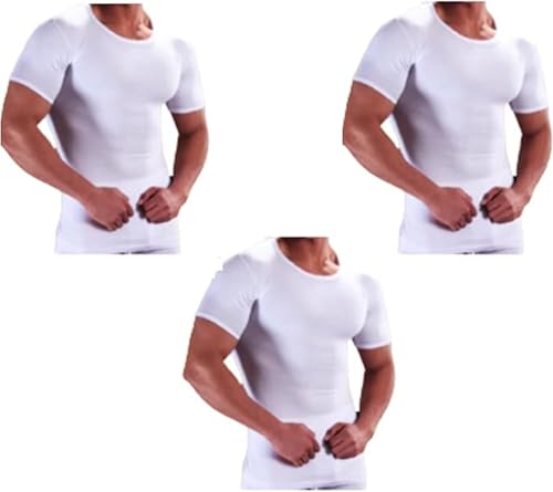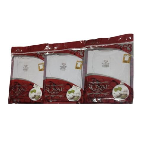 Royal Tex - مجموعة تي شيرت داخلية نصف كم رجالي 3 قطع 100% قطن مصر ناعم ISO 9001 (WHITE, XXL)