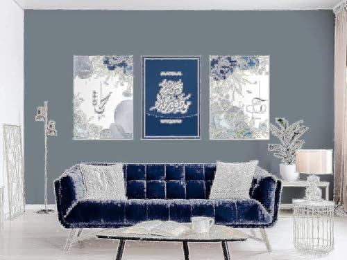 Craftima - 3 تابلوهات مودرن خشب اسلامية و صنع بينكم مودة و رحممة وورد بالون الأزرق مقاس 120 * 60 سم