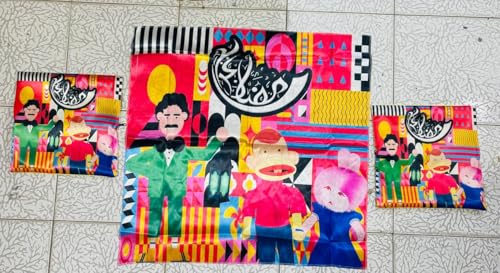 LC - طقم ستان شخصيات رمضان مكون من 3 قطع 2 غطاء كوشن بسوسته مقاس 40 فى 40 ومفرش ستان مقاس متر ونص فى متر ونص