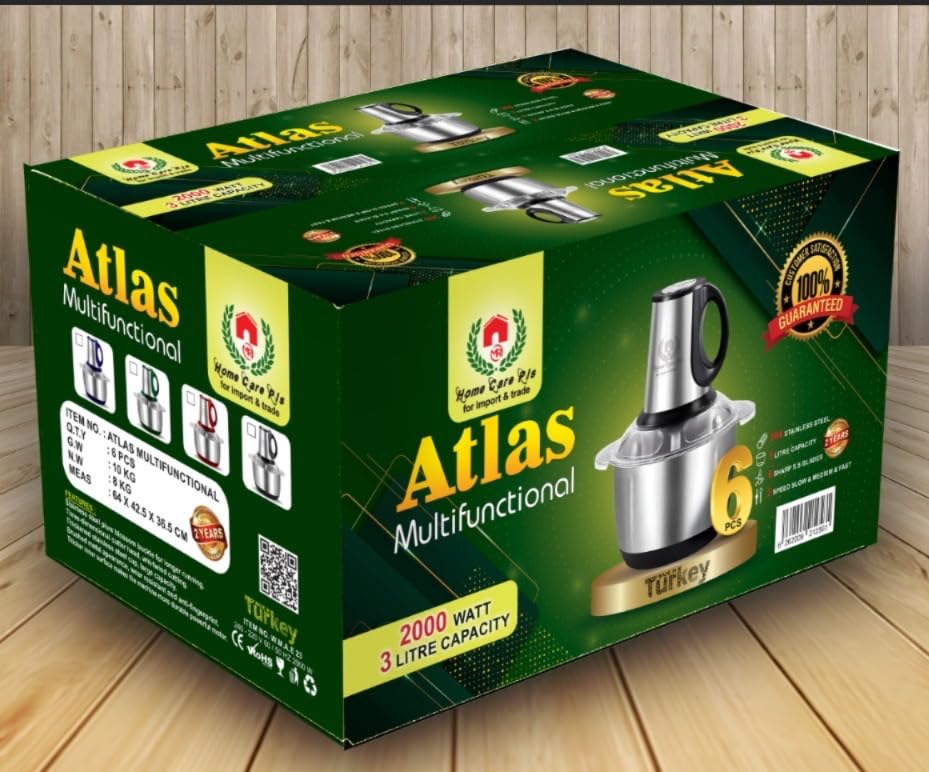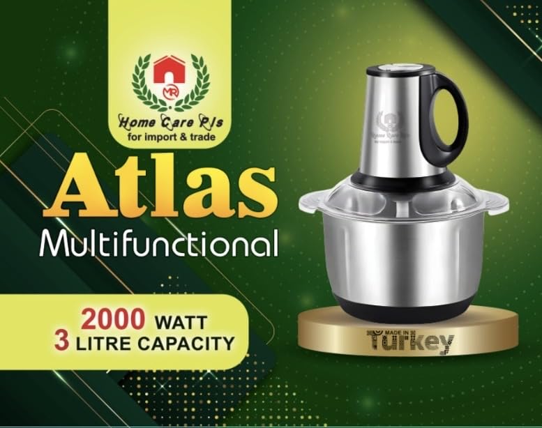 Generic - كبه ومفرمه تفرم وتطحن لحمه خضروات من اطلس ستانيلس استيل صنع في تركيا سعة 3 لتر وموتور نحاس قوي بقدرة 2000وات 4 سلاح دورق الكبة من الفولاذ المقاوم للصدأ بسعة 3 لتر مزودة ب سرعات سهلة التنظيف ضمان سنة
