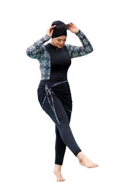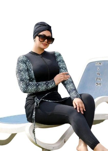 هنادي - مايوه بوركيني حريمي 3 قطع سالوبت وجيب وتربون بتصميم محتشم للسباحة بحر وحمام سباحة خامة مقاومة للكلور سريعة الجفاف مرن ومريح للمصيف 255