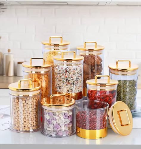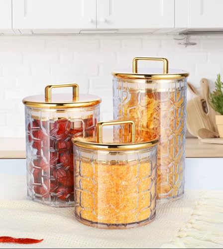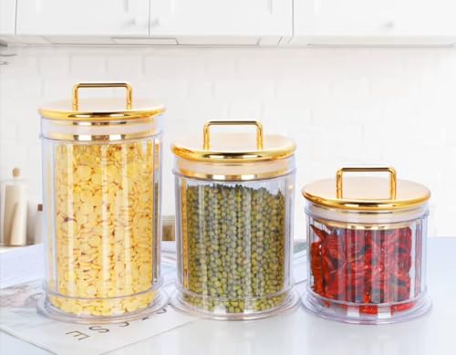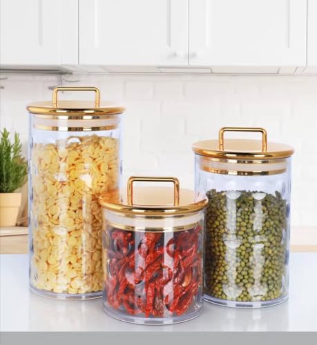 Generic - طقم برطمانات بقوليات و اكليريك حلوى 3 قطع - شفاف نقي بغطاء ذهبي خشب سيليكون 300/600 / 1000 مل N