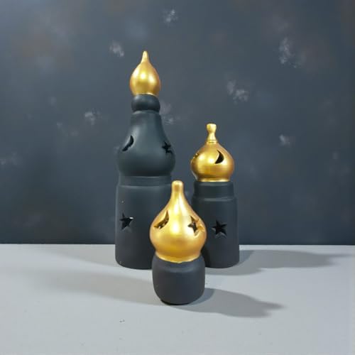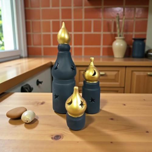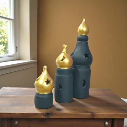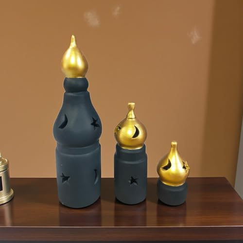 Generic - طقم فانوس 3 مقاسات بدون شمع من الفكورة للديكور ارتفاع 35.25.13 -fan1
