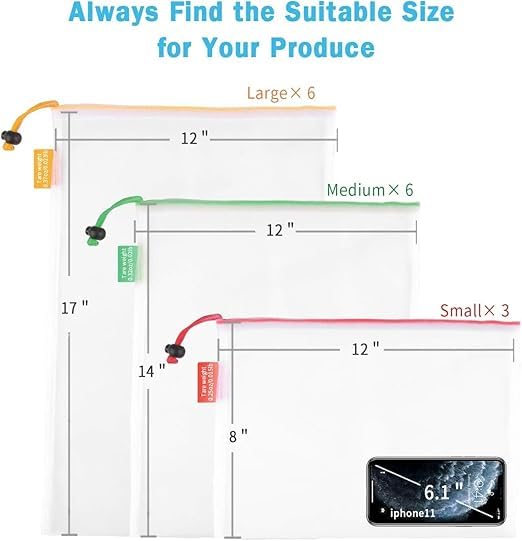Generic - أكياس تخزين طعام بـ 3 مقاسات مختلفة وقابلة لإعادة الاستخدام ومناسبة للمنتجات واللحوم وغير ذلك الكثير | أسهل طريقة للحفاظ على المنتجات من الرطوبة والتهوية | 9 أكياس مختلفة، مزيج من الألوان
