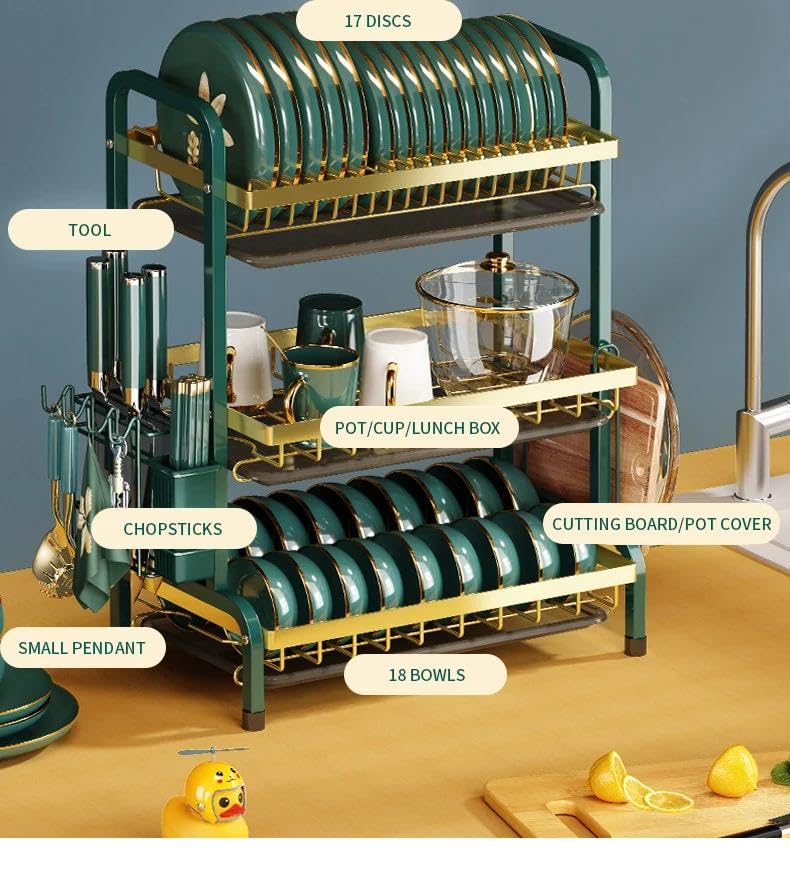 Generic - مطبقيه معدنيه 3 دور مستورد ضد الصدا والتجريح وصفايه للاكواب والكاسات والسكاكين JU-802 - الحل الأمثل للمطابخ المتطورة والمهتمة بالجودة والأمان. تصميم فريد ومتين يوفر استخداماً طويل الأمد. تأتي مع أخضر