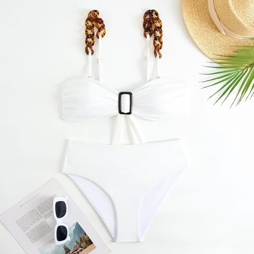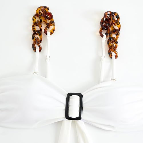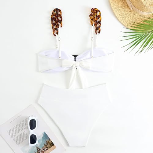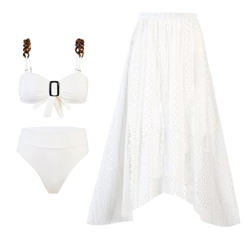 Generic - 3-Piece Swimsuit Set For Women with Chain Strap Bikini Top, High-Waist Bottom, Butterfly Print Sarong