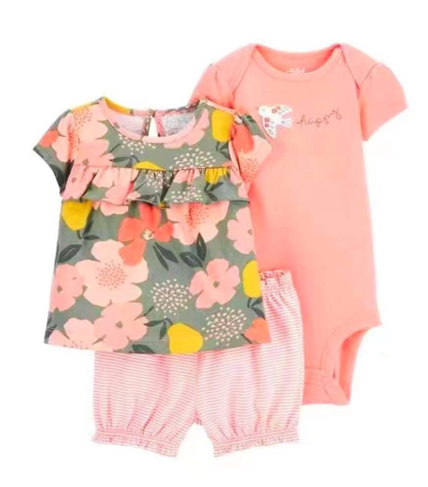 Generic - طقم 3 قطع صيفي للبنات قطن مستورد سالوبيت بدلة صيفي Romper قطن للبنات مقاسات من 0-24 شهر -للبنات الأطفال (طقم 3 قطع شكل 3, 9-12 Months)