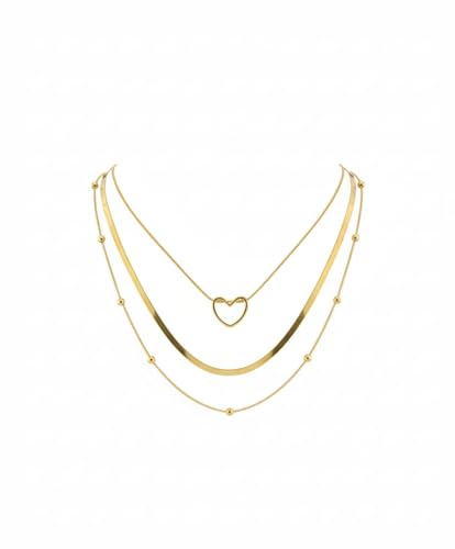 Generic - عرض تلت سلاسل عبره عن سلسلة قلب و سلسلة حيه سلسلة حمس استانلس استيل مطلي بالذهب عيار 316L ضد الماء ضد الصدأ