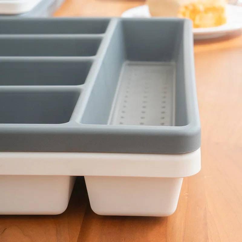 - اجعل مطبخك أكثر ترتيبًا وأناقة مع منظم معالق الدرج المصمم بعناية ليلبي احتياجاتك اليومية في التنظيم والتخزين. تم تصنيع هذا المنظم من خامات عالية الجودة تجمع بين البلاستيك المتين والسليكون المرن المقاوم للكسر، ما يمنحه قوة تحمل استثنائية ومرونة في الاستخدام لفترة طويلة دون تلف أو تشققات.