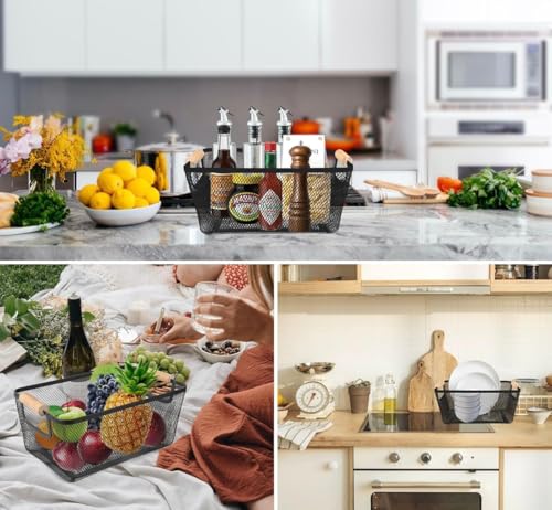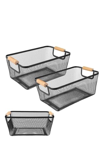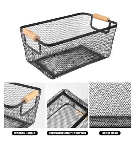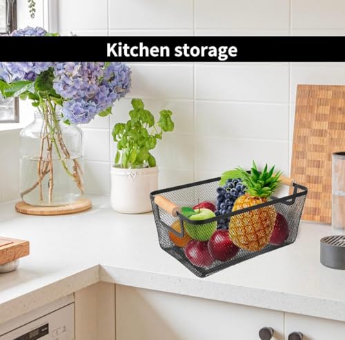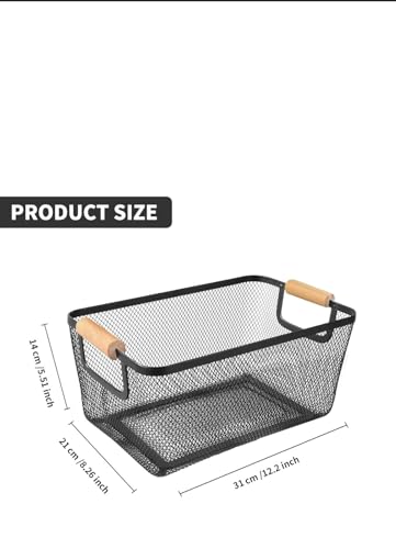 Generic - سلة منظم معدنية شبكي بيد خشبي - متوفر متعددة مقاسات (35*21.5*15.5سم)