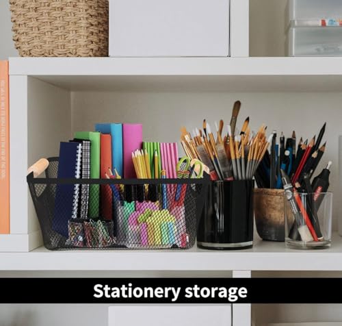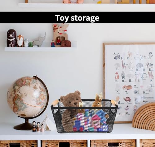 - Stylish and functional storage basket made of durable black plated metal with breathable mesh design