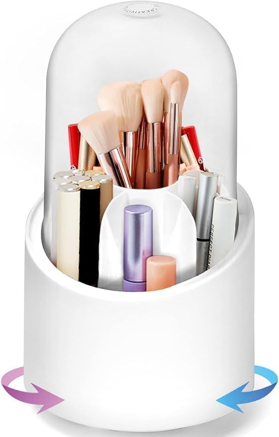 - يتميز منظم فرش المكياج بتصميم دوار بزاوية 360 درجة يسمح لك بالوصول إلى جميع أدواتك بسهولة وسرعة. هذه الميزة تجعل روتين المكياج أكثر راحة حيث يمكنك العثور على الفرشاة أو الأداة المطلوبة دون البحث الطويل بين الأدوات.