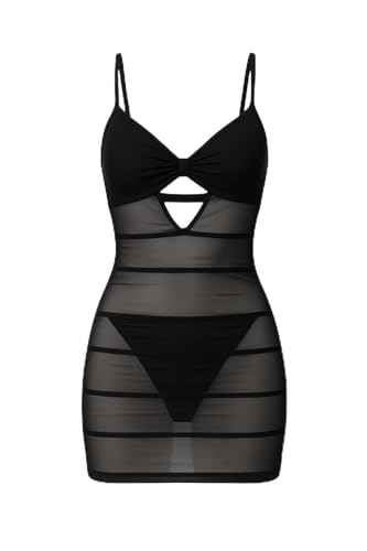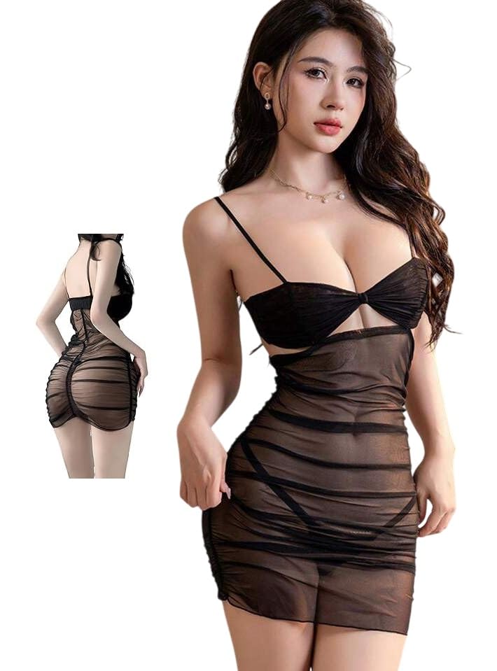 Generic - لانجري قميص نوم أسود قصير بحمالات رفيعة وقصّة صدر ملتفّة، تحديد خصر يبرز القوام ولمسة شفافة راقية لإطلالة ليلية تلفت النظرمن كيان للتجارة و التوزيع كود 373