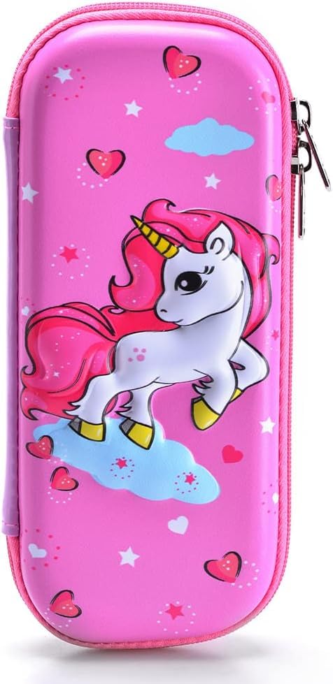 - Attractive Pattern: 3D Unicorn embossed on the top in these funky colorful molded hard shell pencil cases. The spacious case in cute design is smooth to touch with a fun pattern on the top.