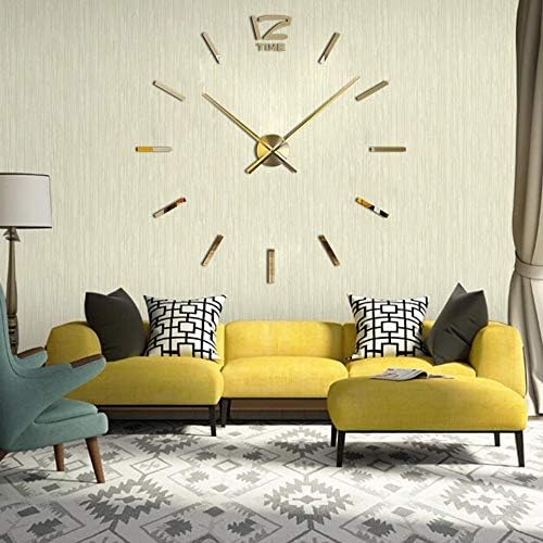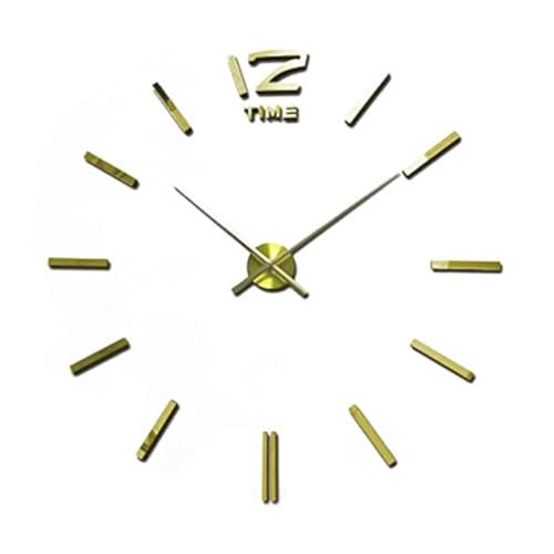 Other - ساعة حائط بتصميم ملصق ثلاثي الأبعاد من الاكريليك، لون ذهبي