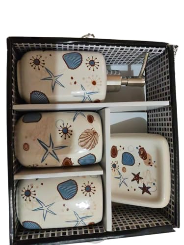 Generic - 4 Piece Ceramic Bathroom Accessories Set (Blue - Red)