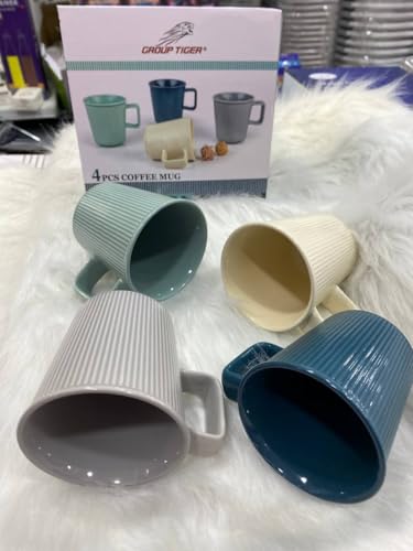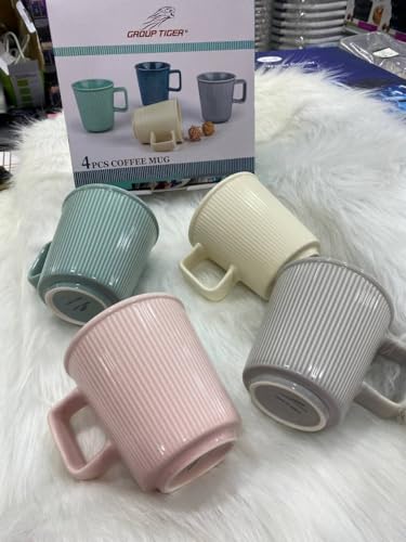 - Premium Set: Set of 4 Elegant Striped Coffee Cups in Matching Colors - Green, Blue, Gray, and Cream