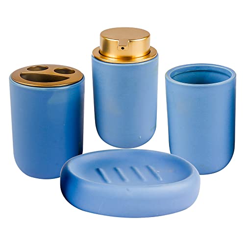 • The bathroom accessory set includes Soap Dispenser Toothbrush Holder Tumbler and Soap dish