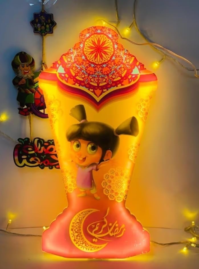 عام - فانوس رمضان مضيء بشخصيات رمضانية، بلاستيك بإضاءة ليد بيضاء، بفيشة كهربائية، 40 سم، تصميمين مختلفين مع أنوار زينة رمضان 2026