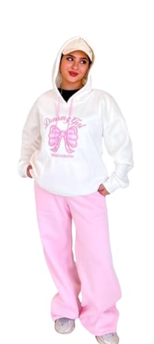 Generic - ترنج حريمى شتوى هودى انيق بطبعه فراشة وبنطلون واسع سوت ترندى جذابه ترنج حريمى لاطلاله ترندى ساحره تخطف الانظار من التجاره كيان التوزيع و كود 4028 (بينك، L)