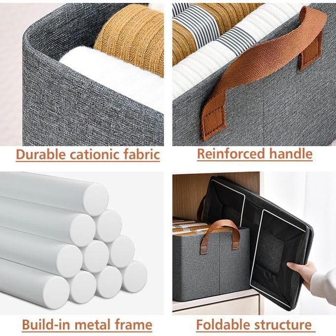 - ✅ 【هيكل قوي وثابت】القوايم المعدنية الداخلية تمنح بوكس التخزين ثباتًا عاليًا وقدرة تحمل ممتازة، مما يسمح بوضع كميات كبيرة من الملابس أو الأغطية دون التأثير على شكل البوكس أو تماسكه، ويضمن استخدامًا طويل الأمد دون انحناء أو تلف، ليكون حلًا عمليًا وموثوقًا للاستخدام اليومي داخل المنزل. 🧱