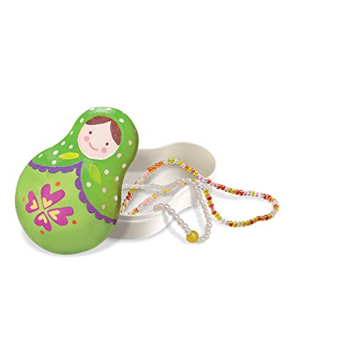 • المكونات: 6 صناديق اكسسوارات على شكل دمى روسية و6 الوان متنوعة وفرشاة تلوين وكتيب ارشادات