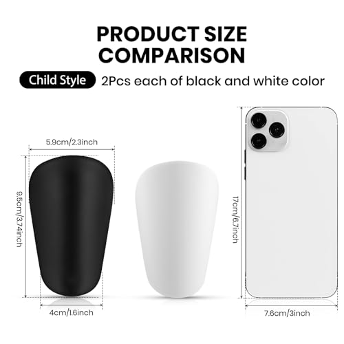 - 【Extra Miniature Design】: Engineered for the dynamic needs of youth, our 4 pieces/2pairs mini shin guards soccer (white and black) offer a sleek and compact design that measures 4×2.3in, ensuring seamless insertion in any soccer socks and preventing bumps and scrapes for teenagers when playing soccer and doing other sports.