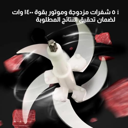 Generic - كبه ومفرمه تفرم وتطحن لحمه خضروات وتوابل ستانليلس استيل سعة كبيرة 5 لتر ومتور نحاس قوي بقوة 1000 وات مزودة ب5 أسلاات حادة ستانليلس دورق الكبة من الفولاذ المقاوم للصدأ مزودة ب3 سرعات سهلة التنظيف