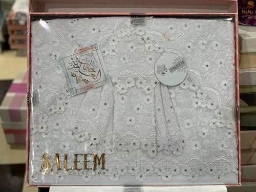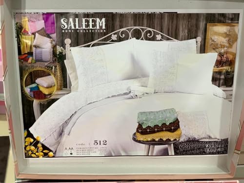 Generic - طقم ملاية سادة مطرز مطعم بالجوبير تركي - 5 قطع - مستورد - مقاس 240*260 سم - موديل ساليم _ لون ابيض 1