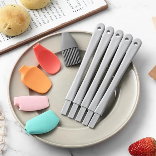 Generic - طقم أدوات توزيع ميني 5 قطع – فرشة زيت + معلقة + شيالة + سباتيولا – ألوان متعددة أنيقة – خامة عالية الجودة Z