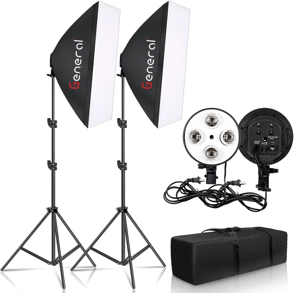 Generic - طقم إضاءة التصوير استوديو الصور فيديو حامل الضوء المستمر اثنين 50 × 70 سم سوفت بوكس 8 لمبات كل لمبه 18 وات مع 2حامل طول 2متر