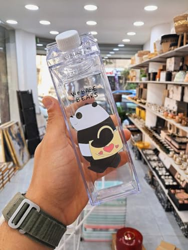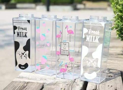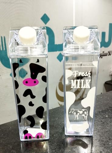 Generic - زجاجة حليب كرتونية سعة 500 مل، زجاجة حليب اكريليك شفافة مطبوعة على شكل بقرة، زجاجة مياه محمولة للتخييم والسفر