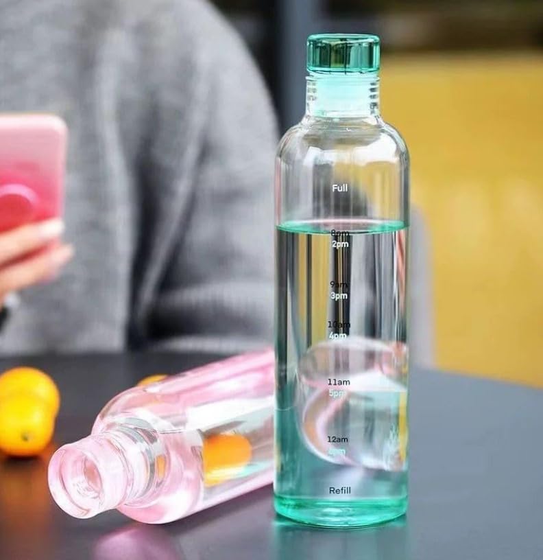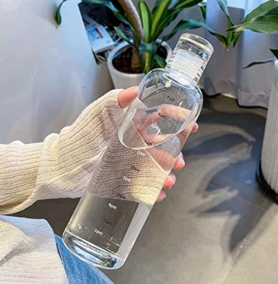 Generic - زجاجة مياه بلاستيك قابلة لإعادة الاستخدام سعة 500 مل شرب مانعة للتسريب مزودة بعلامات وقت رياضية للجيم وتمارين اللياقة البدنية للرجال والنساء - زجاجه ماء رياضيه متينة للاطفال للمدرسة (شفاف)