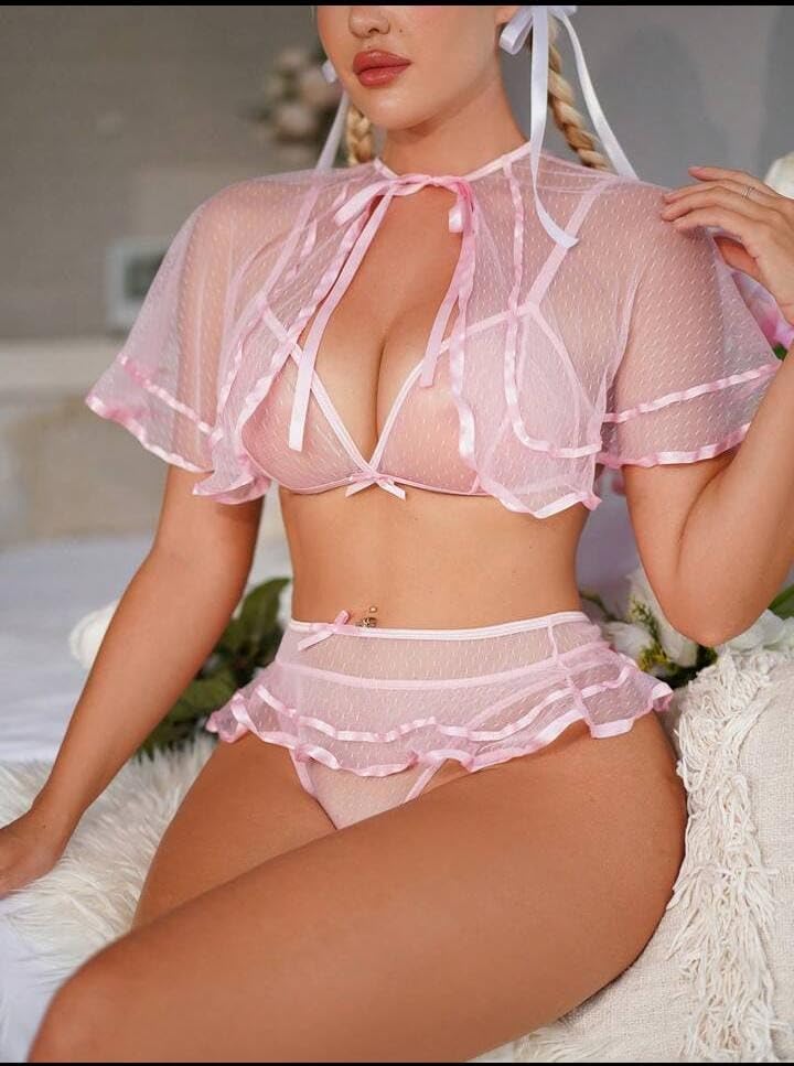 Generic - لانجيري سكسى لانجرى مثير لانجرى بنمط بكينى مع ميكروجيب انيقه جدااا ليجعلكى اكثر اناقه باطلاله مبهره بيبى دول قصير بلاى سوتس شفاف قميص نوم حريمى انيق من كيان للتجاره كود 533