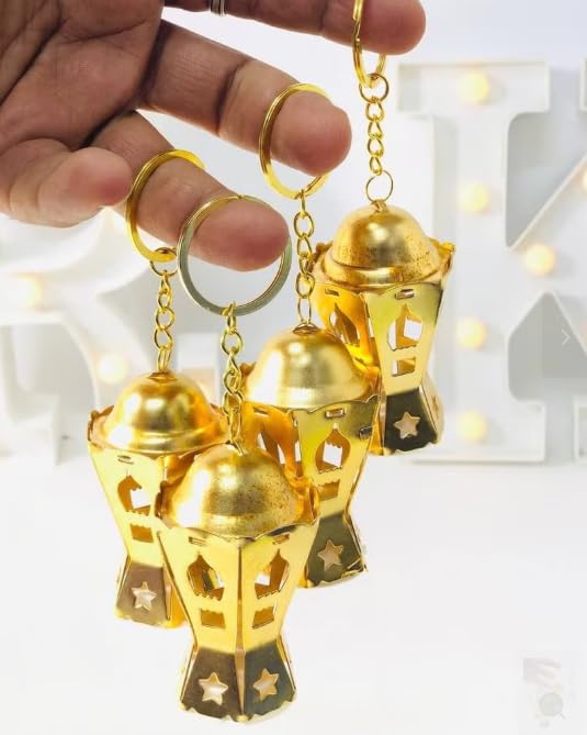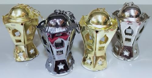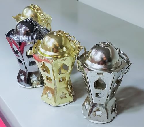 Generic - عرض من 6 قطع طقم سلسلة مفاتيح فانوس رمضان معدن ، مقاس 12 سم اللوان متعدده خمات عاليه الجوده ، تصميم نجمه وهلال مضيه مزخرفه للعطلات، حلقة مفاتيح معدنية INCLUDED بلون دهبى