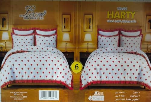 Generic - طقم سرير شبابى 6 قطع كرنيش قلوب 2 ملاية مقاس 200 * 240سم 2 خدادية 2 كيس مخدة